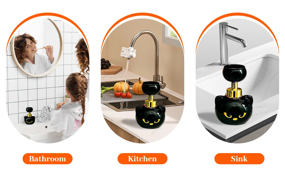 Dispensador de sabonete de espuma em forma de gato preto, produz espuma em forma de pata de gato.Recarregável, adequado para uso em cozinha e banheiro, perfeito para amantes de gatos.